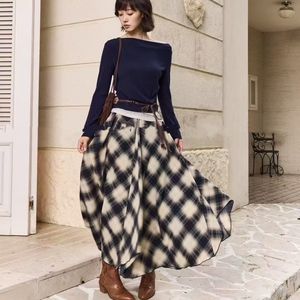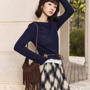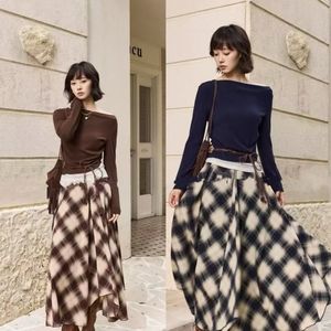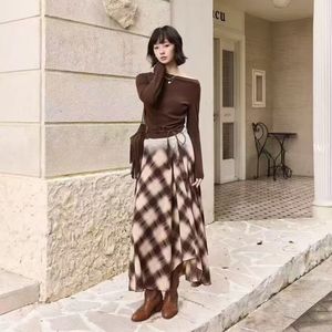 早秋早秋新款 法式设计感小众不规则露肩上衣+高腰格子半身裙套装