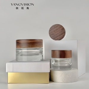 胡桃木盖面部膏霜瓶20g磨砂50g化妆品玻璃分装瓶复古风面霜罐