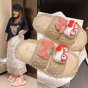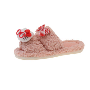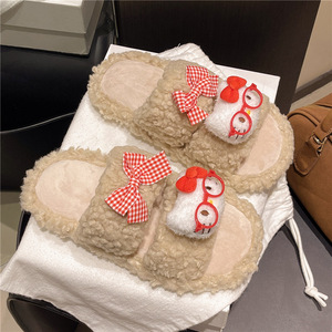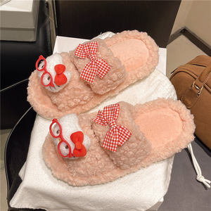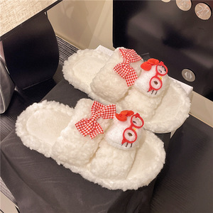 韩系卡通眼镜猫毛拖冬季室内居家懒人棉拖外穿时尚防滑露趾拖鞋