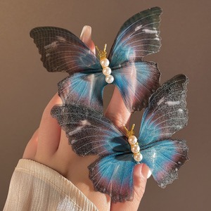 网纱珍珠蝴蝶侧边发夹温柔风鸭嘴夹ins设计感发卡碎发夹子发饰女