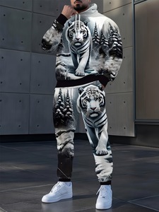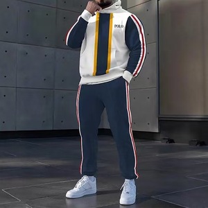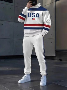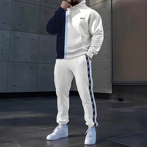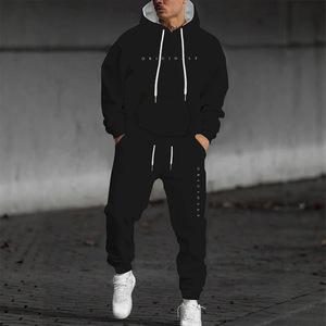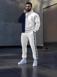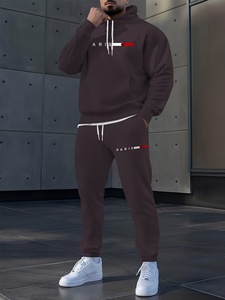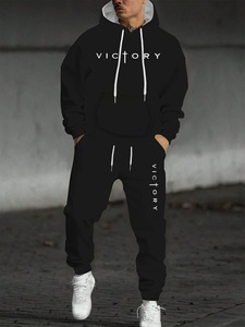 2025简约运动风新款速卖通欧美春秋休闲运动连帽男士卫衣套装
