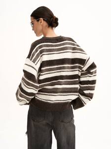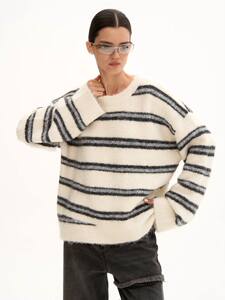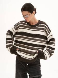 知性风圆领毛衣外套女宽松外穿秋季新款女士洋气条纹撞色针织衫冬