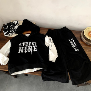 男童三件套春秋款卫衣2025新款儿童春季衣服洋气男宝时髦痞帅套装