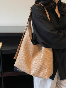 秋冬季复古大容量包包女2025新款时尚编织纹单肩斜挎包托特水桶包