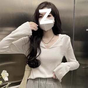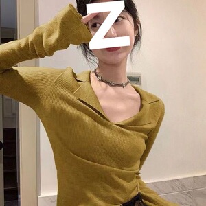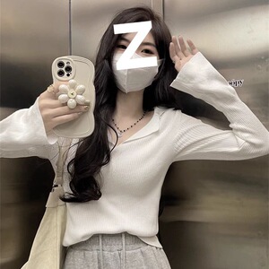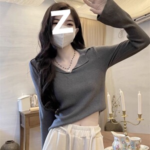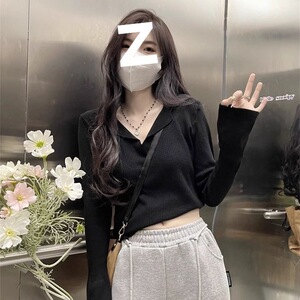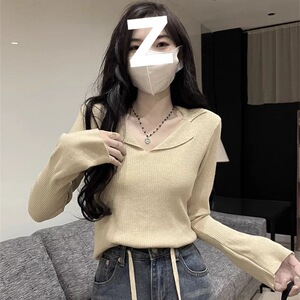 辣妹翻领打底针织衫女秋季韩版2025新款修身显瘦短款内搭长袖上衣
