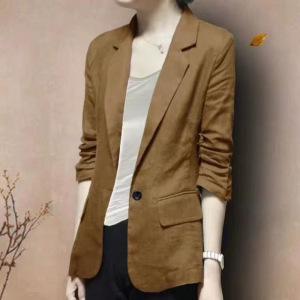 春秋棉麻小西装外套秋季新款薄款亚麻女士大码休闲显瘦西服七分袖