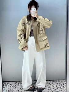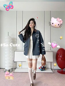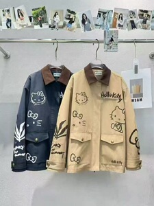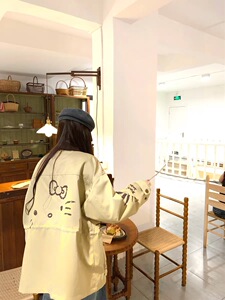 韩系风衣Kt猫印2025秋季高级感百搭工装风长袖翻领外套休闲上衣女