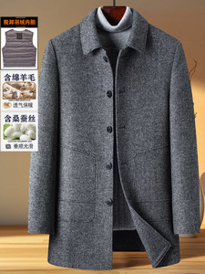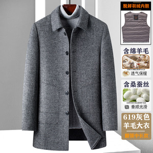 2025冬装高档男士双面尼羊毛大衣中长款羊毛呢子羽绒服桑蚕丝外套