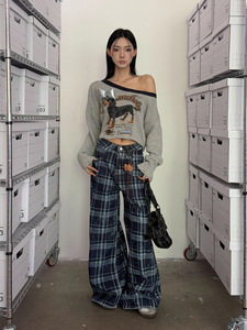 ME KAKAMEE十三行秋混纱彩点工艺喷画腊肠狗短款斜肩针织衫女6008