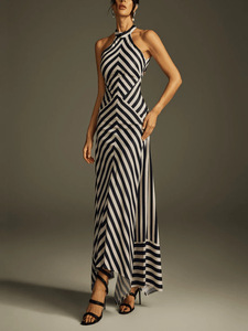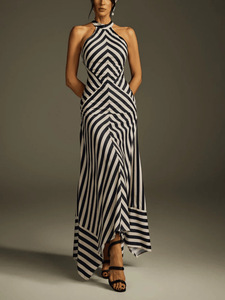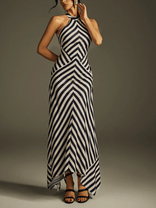 亚马逊跨境欧美外贸女装气质无袖露背斑马纹连衣裙时尚显瘦礼服女