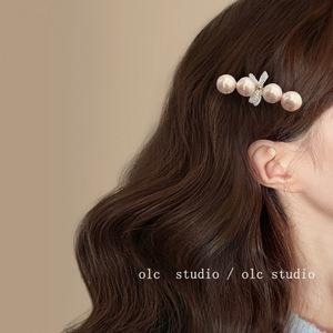 韩系女主~轻奢珍珠发夹边夹侧边甜美复古鸭嘴夹蝴蝶结旅行发卡女