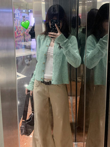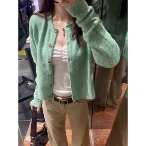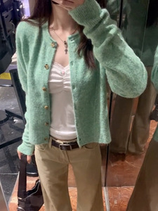 2025秋冬新款毛衣百搭绿色小个子外套宽松慵懒风针织开衫女上