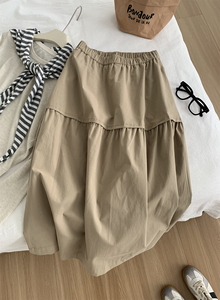 小红薯热卖日系简约宽松慵懒风高腰半身裙女秋季口袋卡其色裙子新