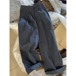 墙裂推!秒变大长腿显瘦佰搭!高腰裤子显瘦压褶卷边灰色西装裤女