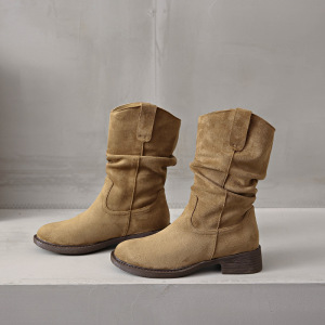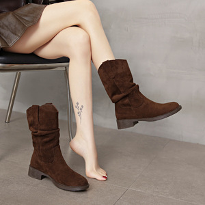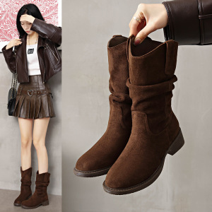 2025新款法式复古V口圆头内增高粗跟短靴女气质显瘦短筒靴子