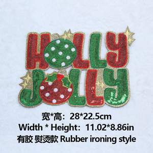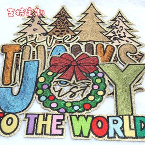 跨境专供圣诞情人节系列英文亮片刺绣布贴衣服包包装饰DIY补丁贴