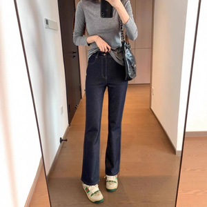 LM91早秋新 禾家同款绵羊毛柔软细腻四面弹显瘦高腰微喇牛仔裤