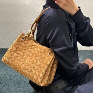 跨境头层磨砂牛皮编织降落伞水桶包秋冬款手提包百搭单肩斜挎女包