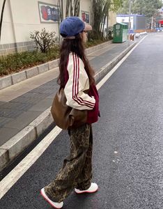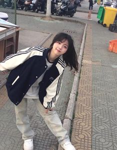 美式棒球服女春秋新款三条杆撞色字母设计感休闲宽松夹克外套女潮
