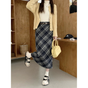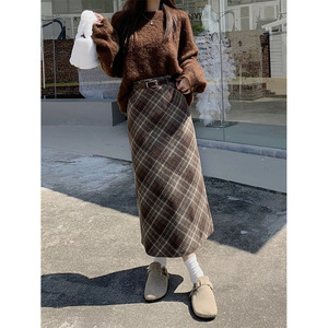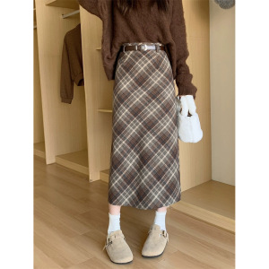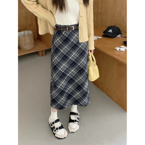 【现货】胖女装毛呢半身裙女2025秋秋包臀格纹中长款字裙其他