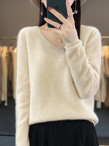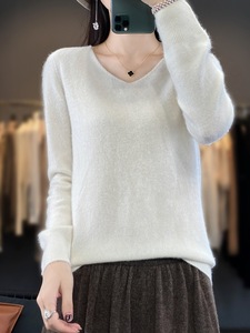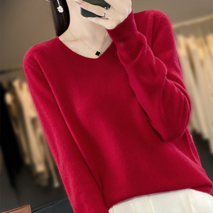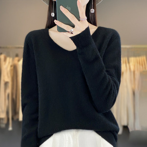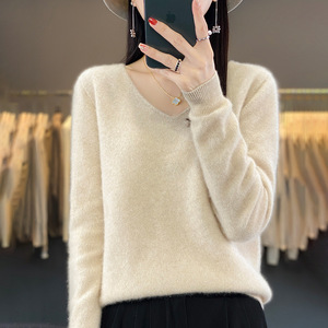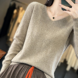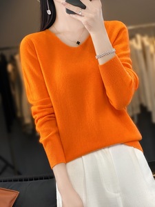 跨境批发秋冬新款V领羊毛衫女显瘦软糯针织一线成衣打底保暖毛衣