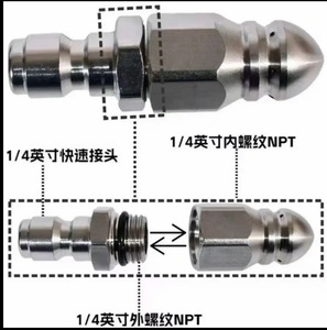 工厂现货不锈钢1/4水老鼠头喷嘴尖头前1后6下水道疏通头高压清洁