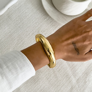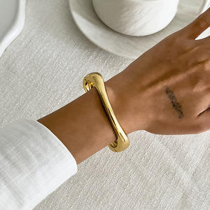 欧美跨境饰品 轻奢风金属切边光面弹簧手镯 冷淡风不规则几何手环