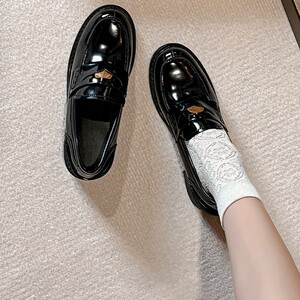 2025年秋冬英伦风圆头小金币一脚蹬粗跟厚底乐福鞋学院JK小皮鞋软