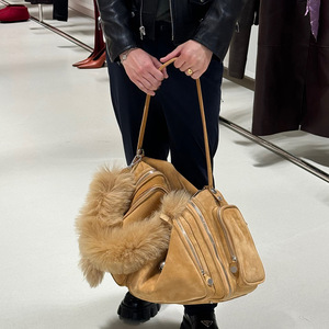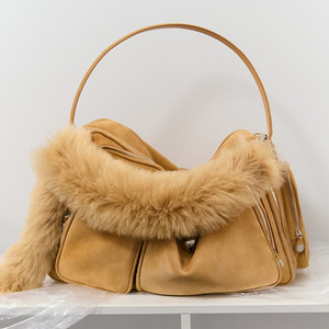 手提毛绒包2025秋冬新款网红款磨砂麂皮百搭托特包休闲时尚女包包