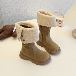 女童长靴2025冬季新款时尚加绒保暖雪地靴女孩时尚防滑学生