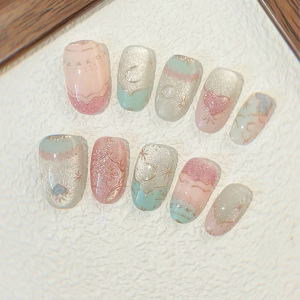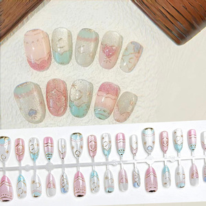 复古宫廷风玻璃米亚穿戴甲猫眼鎏金巴洛克美甲贴片ins30片小众