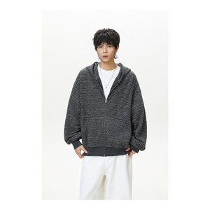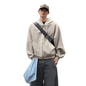 2025新款美式复古条纹拉链开衫连帽卫衣男女宽松休闲百搭情侣外套