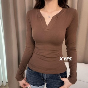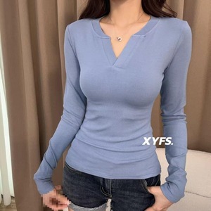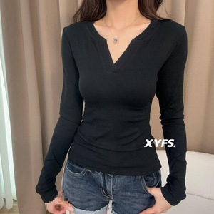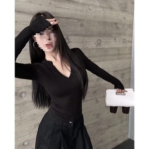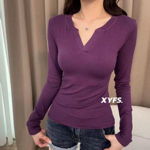 2025红色复古领长袖正肩恤女秋冬气质收腰修身打底衫低领上衣