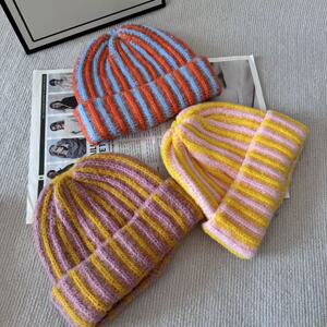 韩国代购东大门新款多巴胺彩色双线针织帽女秋冬大头围保暖毛线帽
