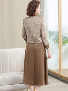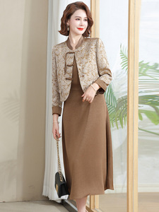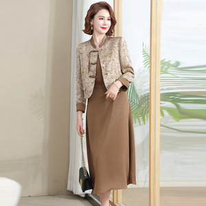 新中式气质中老年女装春秋装妈妈装外套裙子两件套套装减龄连衣裙
