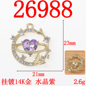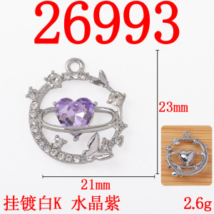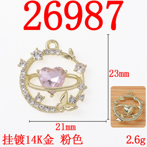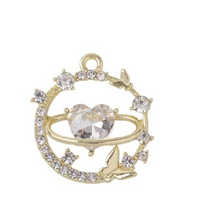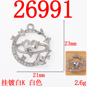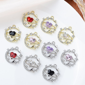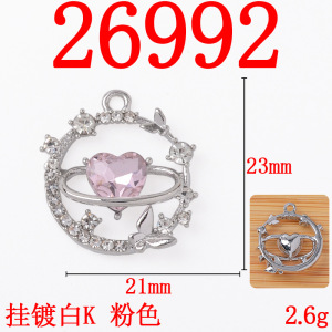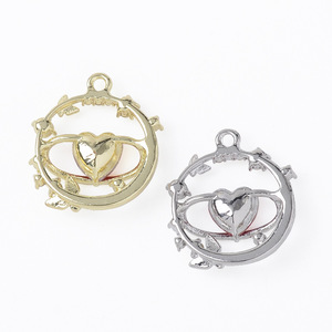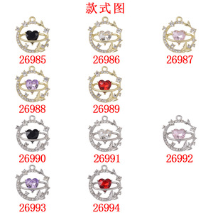 网红爆款圆形满钻爆闪镶嵌爱心饰品吊坠项链手链DIY合金饰品配件