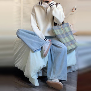 学院风拉链毛衣女秋冬季2025新款奶呼呼软糯慵懒设计感针织衫上衣