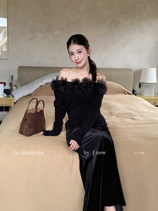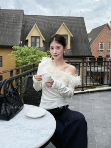 LS述致 气质花瓣拼接设计长袖针织上衣女2025秋新款女装小衫61135