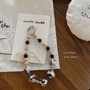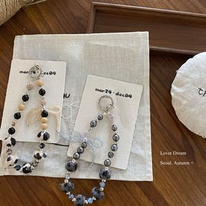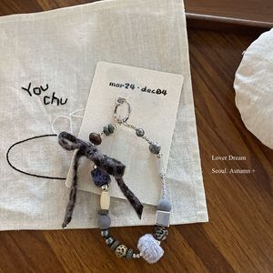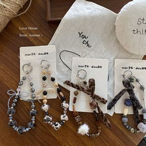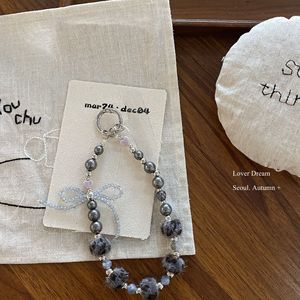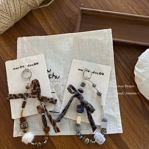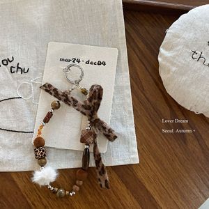韩国秋冬新款豹纹串珠蝴蝶结手机链 时尚高级感钥匙扣包包挂件女