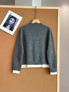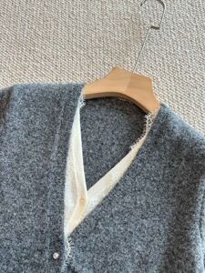 25秋季新款女士极简风V领蕾丝花边羊毛假两件开衫针织衫0901t4