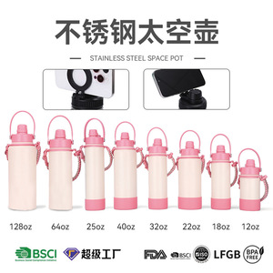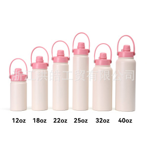 跨境手提户外304不锈钢双层真空保温杯便携带编织挂绳运动水壶