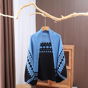 2025秋冬新款100%羊毛菱格披肩保暖针织羊绒披肩斗篷厂家跨境批发
