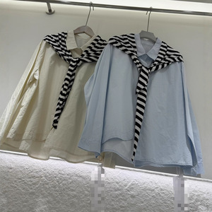 休闲百搭纯色棉翻领长袖衬衫女 2025秋季新款宽松大码开衫衬衣