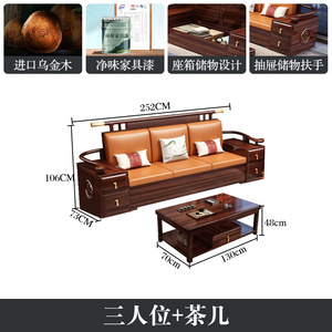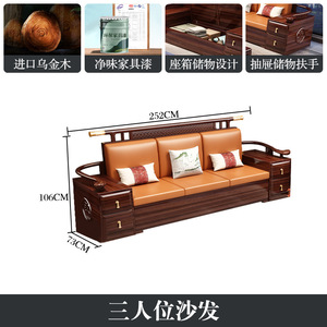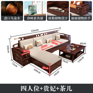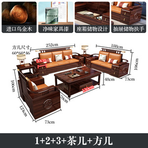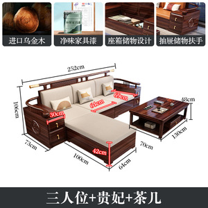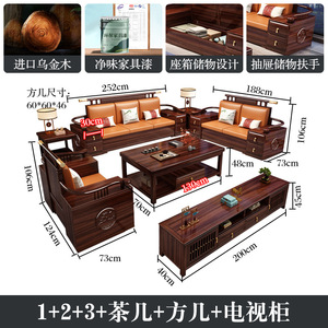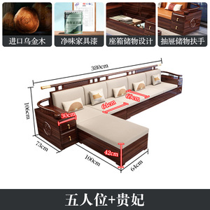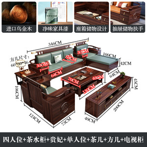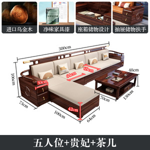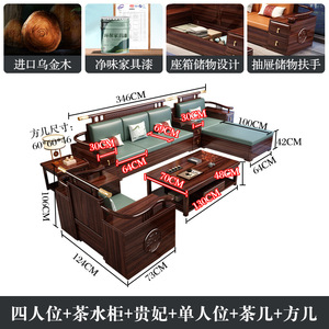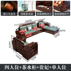 新中式乌金木实木沙发现代简约大小户型转角储物家具组合冬夏两用