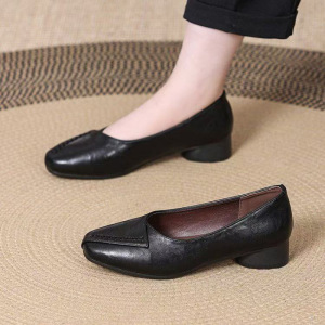 粗跟复古一脚蹬2025新款春秋四季浅口鞋低跟气质豆豆鞋妈妈单鞋女