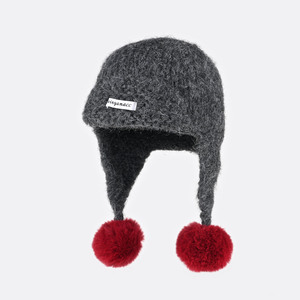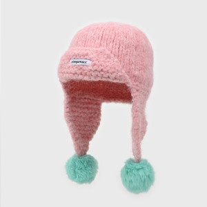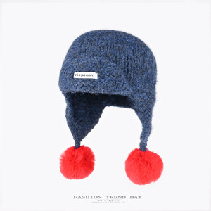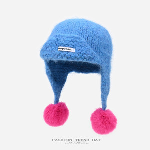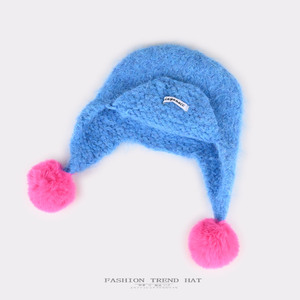 韩版多巴胺撞色针织毛线帽女秋冬加厚毛球护耳保暖显脸小雷锋帽潮