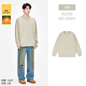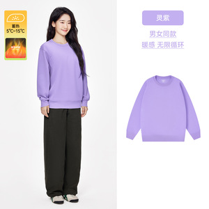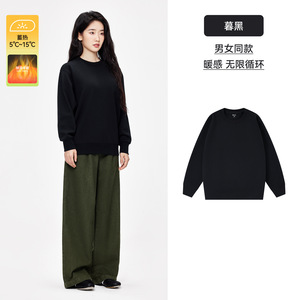 「棉的美学」简约无帽圆领加绒卫衣男女款慵懒风百搭休闲保暖上衣
