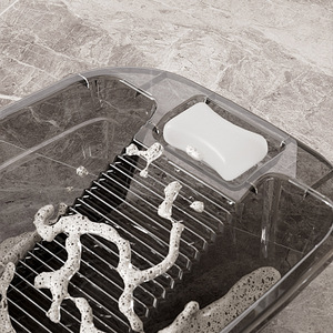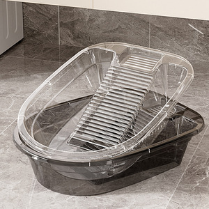 家用塑料洗衣盆带搓板透明洗衣盆大号长方形带搓衣板搓衣一体式盆