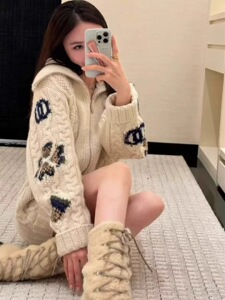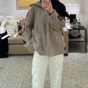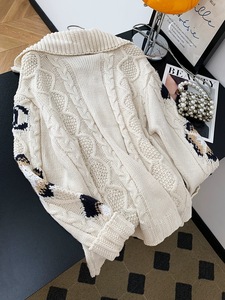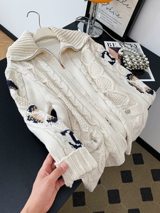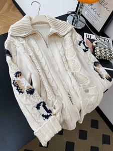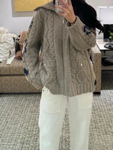 重工麻花翻领拉链针织外套2025秋冬新款韩版宽松复古提花毛衣女厚