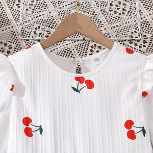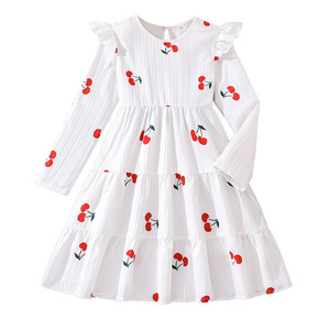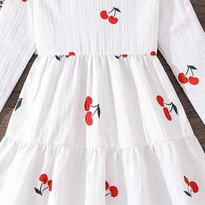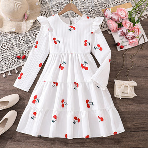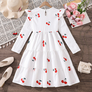 女大童连衣裙2025秋季新款韩版圆领长袖可爱樱桃印花小女孩公主裙